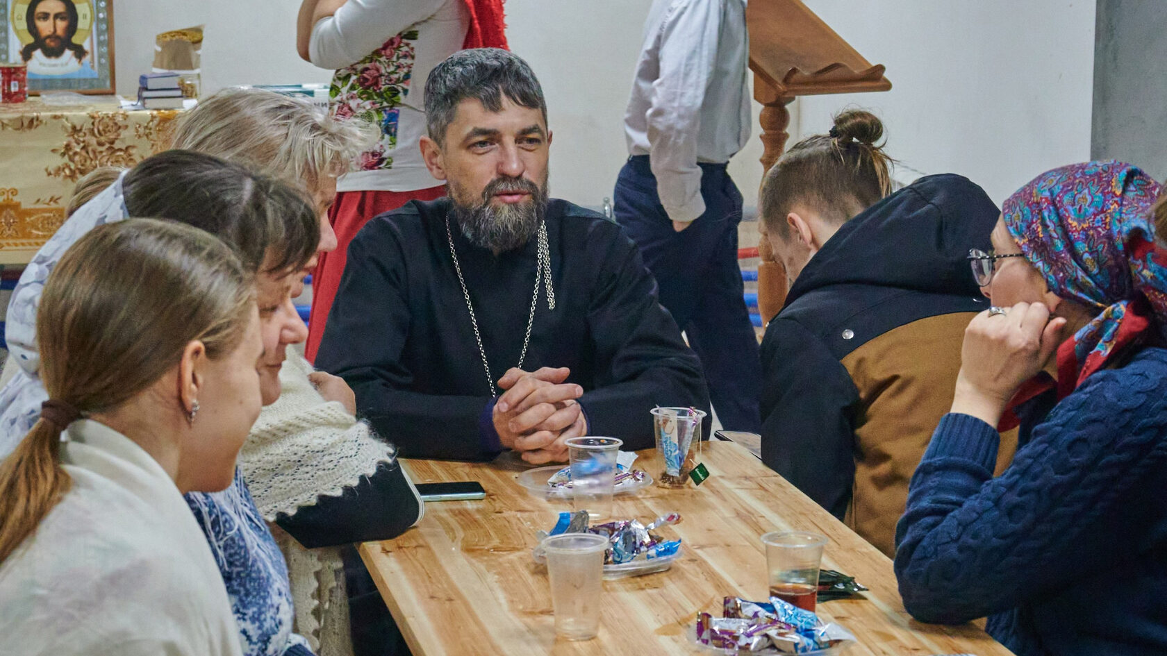Настоятель храма, священник Виктор Лукинцов, многодетный отец пятерых детей.